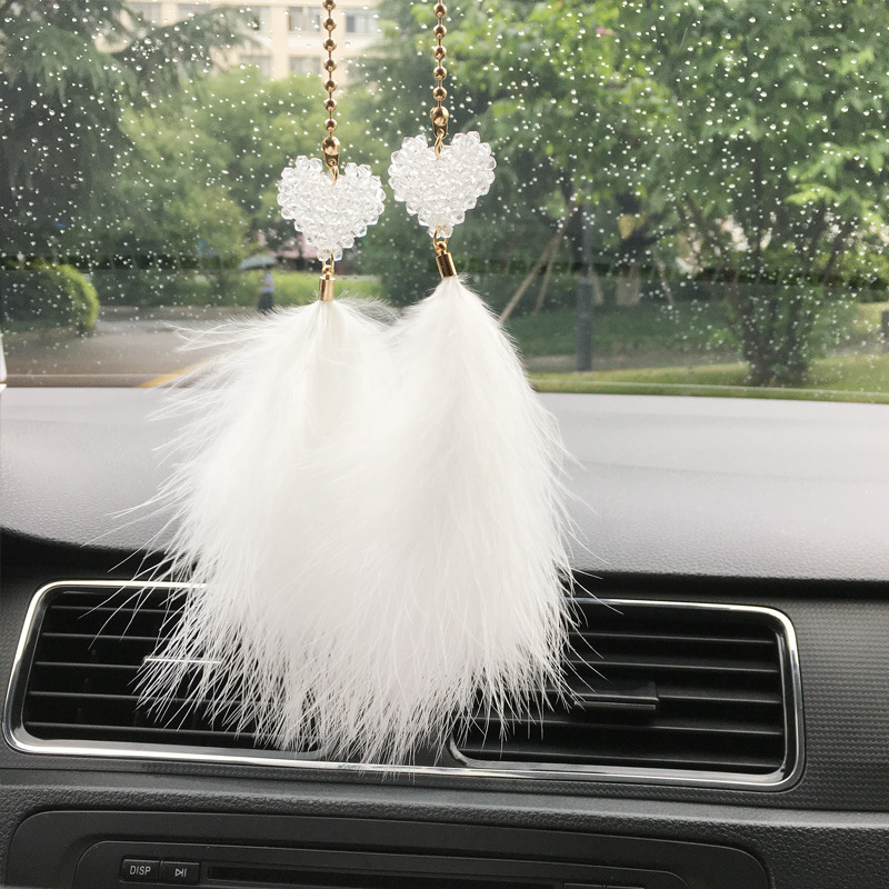 Exquisite Creative Car pendant car accessories imitation Crystal double love feather mirror hanging goddess small wholesale