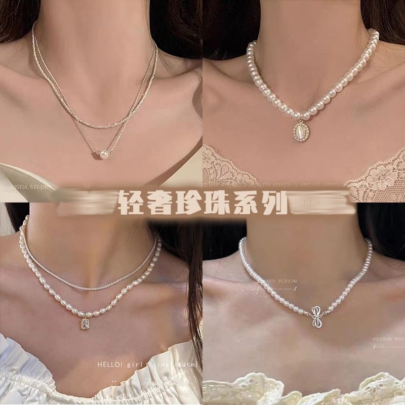 Ins Style Accessible Luxury Pearl Necklace Heart Goddess Beaded Clavicle Chain Women's Versatile Accessories Wholesale 2025 New Style