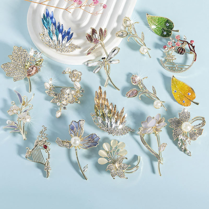 Ancient Style Brooch, Versatile, Anti-Exposure, Crystal Suit Collar, Flower Pin, Korean Style Fashion Corsage Jewelry, Gift Giving