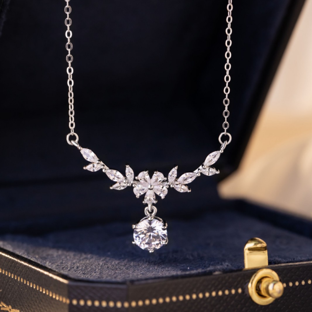 Silver-plated pink crystal necklace 2024 new popular light luxury niche pendant goddess festival gift for girlfriend birthday wholesale