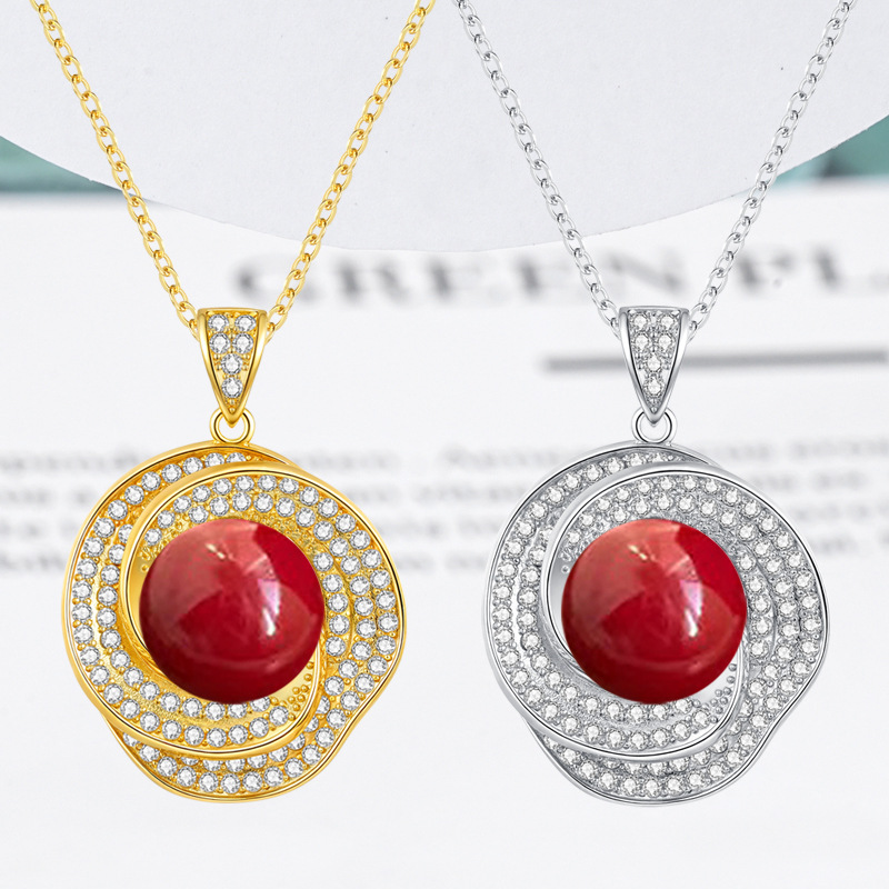 Chinese Style Purple Gold Sand Pendant Necklace for Women with Cinnabar Zircon Pendant Goddess Collarbone Chain Accessory