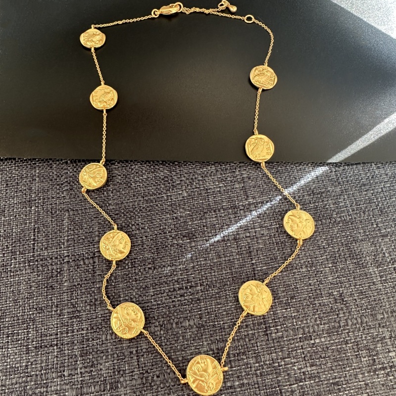 Meiouya original retro frosted mini gold coin Greek myth wisdom Athena owl portrait sweater chain