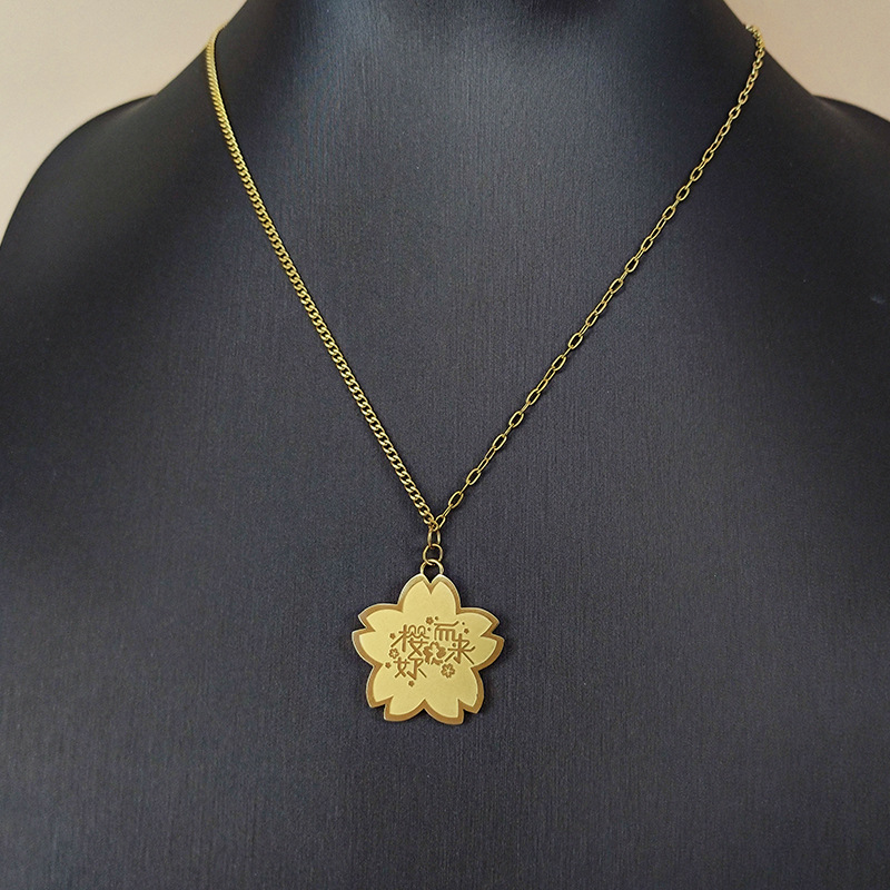 Titanium steel frosted double-sided cherry blossom necklace women's elegant simple light luxury all-match Golden lucky clavicle chain necklace wholesale