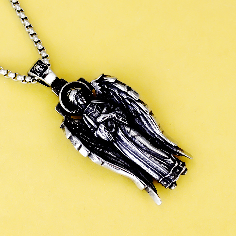 European and American Style Faith Goddess Prayer Wings Wishing Virgin Mary Stainless Steel Necklace Factory Direct Sales Wholesale