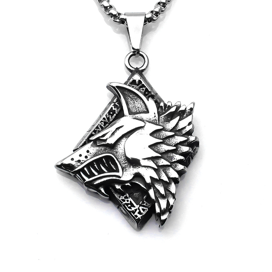 2025 Cross-Border Popular Viking Odin Wolf Head Tag Stainless Steel Pendant Scandinavian Mythology Necklace Personalized Design