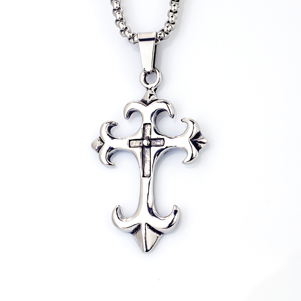 2025 Cross-Border European and American Retro Cross Personalized Pendant Punk Hip-Hop Street Versatile Trendy Men's Stainless Steel Necklace