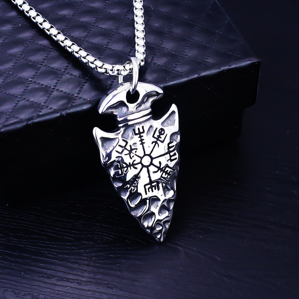 European and American Viking Spearhead Compass Titanium Steel Pendant Retro Rune Stainless Steel Pendant Necklace Jewelry Wholesale