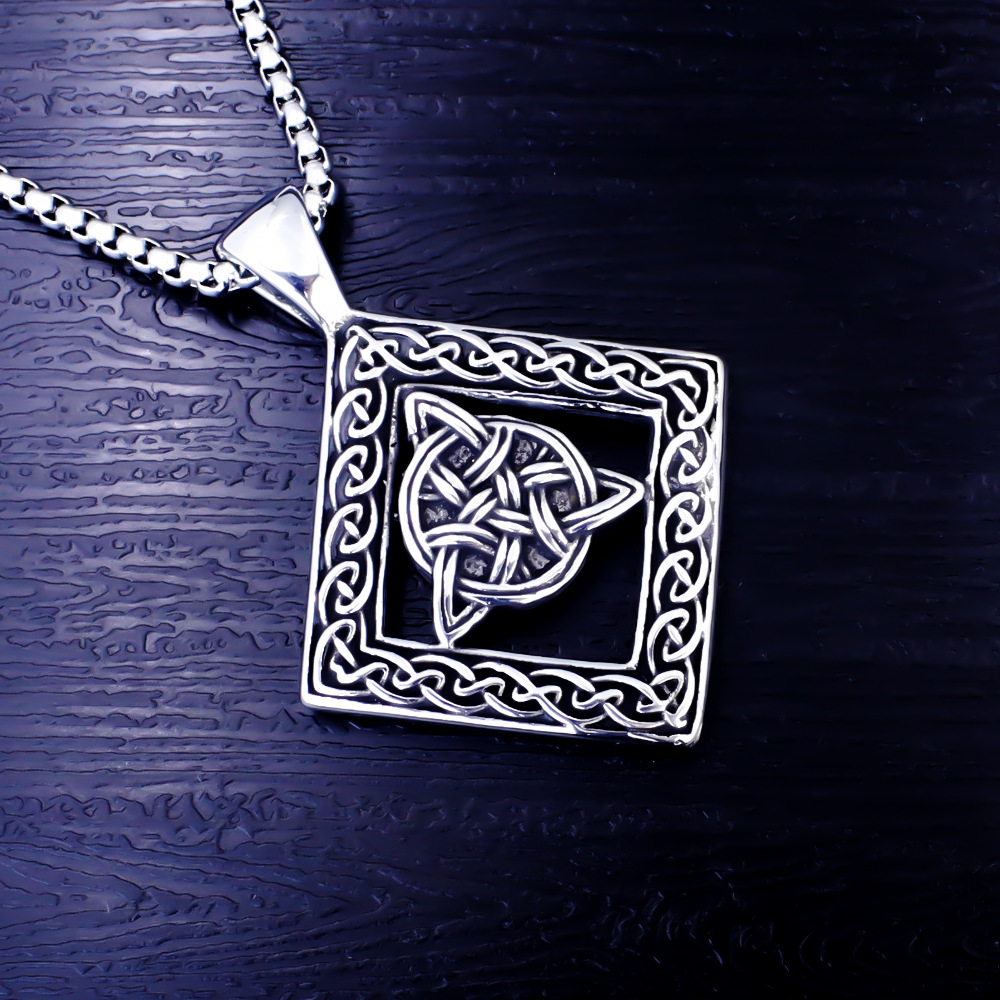 2026 New Hot-Selling New Viking Rune Cross Triangle Chinese Knot Stainless Steel Necklace Simple Pendant