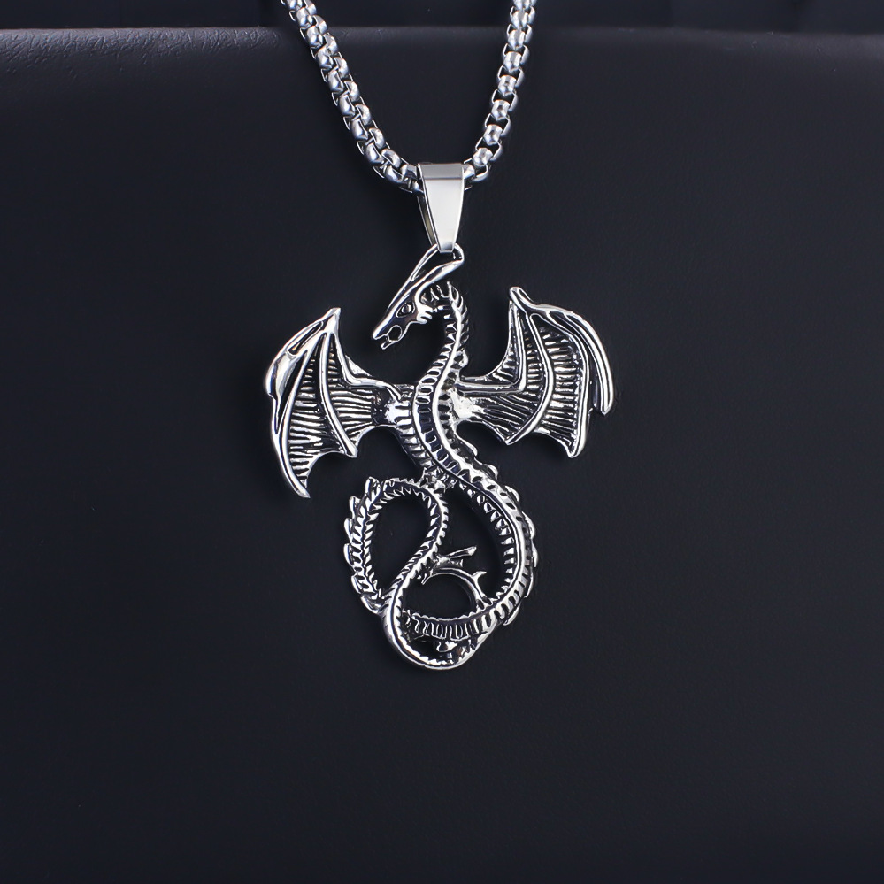 European and American Jewelry Titanium Steel Flying Dragon Pendant Personalized Punk Retro Trendy Men's Stainless Steel Necklace Fire-Breathing Dragon Pendant