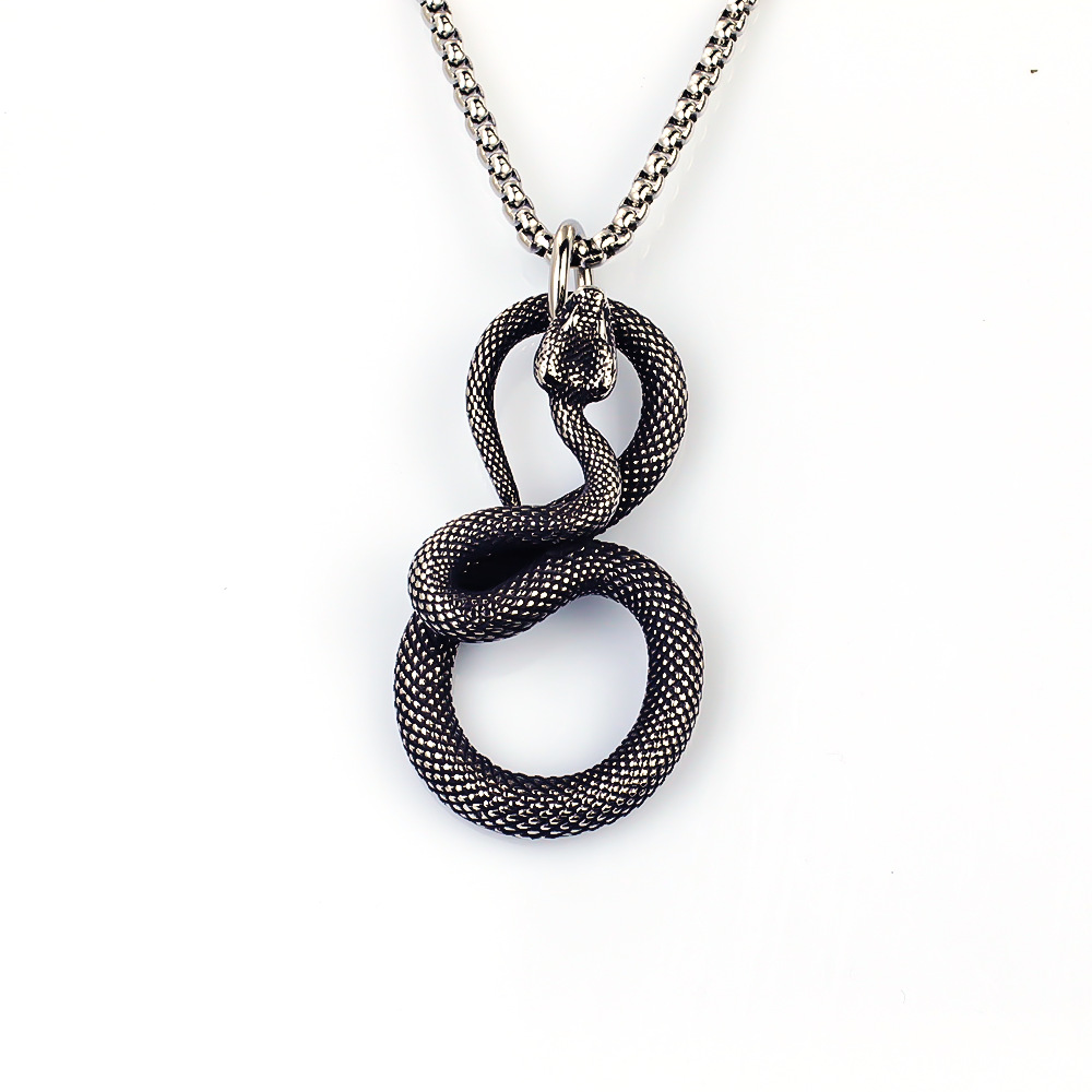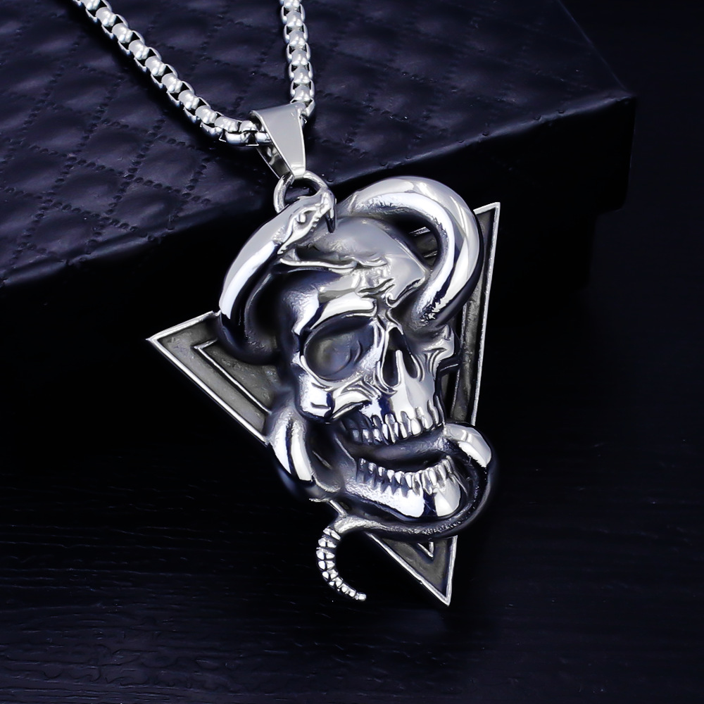 Cross-Border New Hot Selling European and American Skull Pendant Necklace Snake Popular Necklace Retro Men's Necklace Wholesale