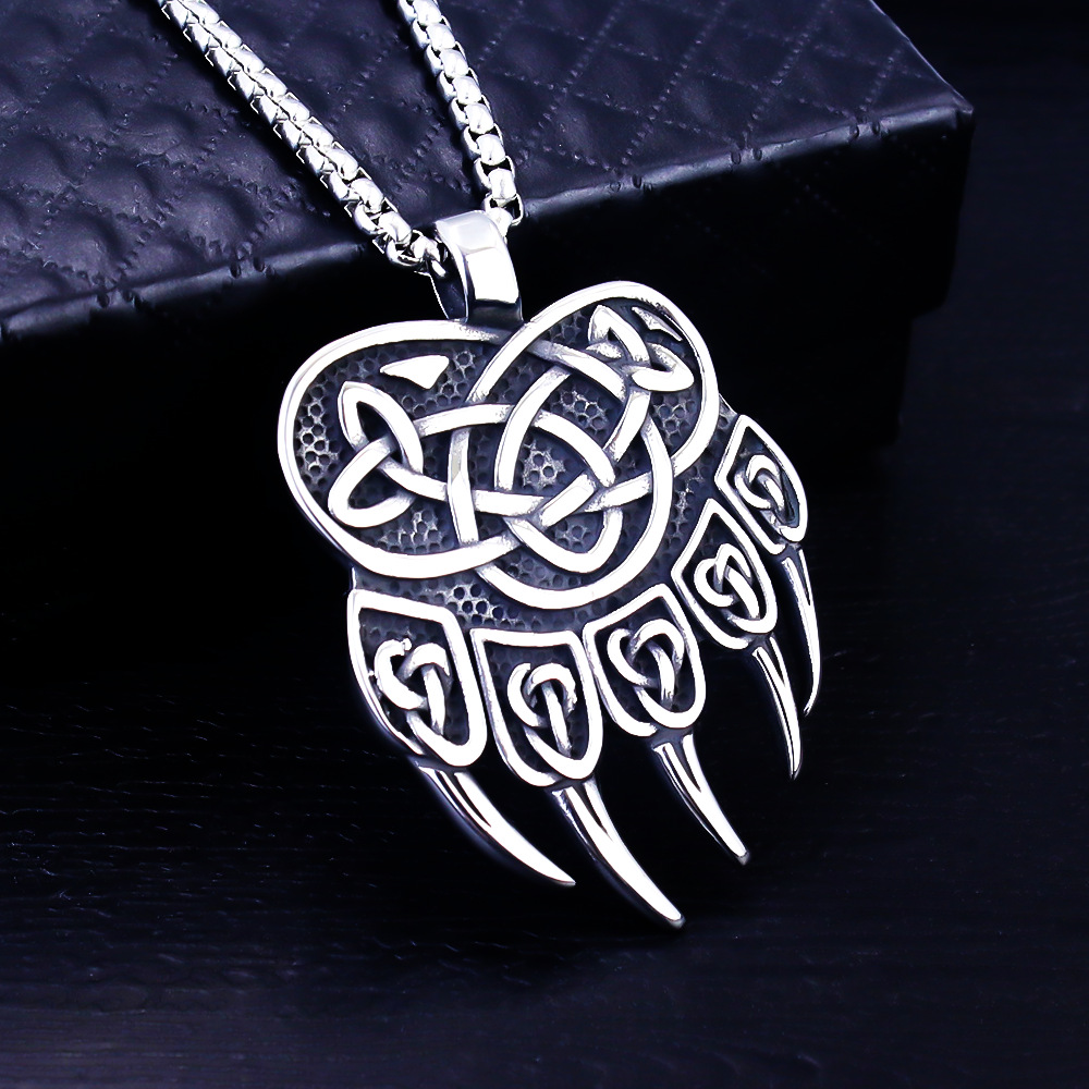 New European and American Retro Stainless Steel Viking Pendant Retro Men's Personalized Bear Claw Titanium Steel Necklace New Jewelry