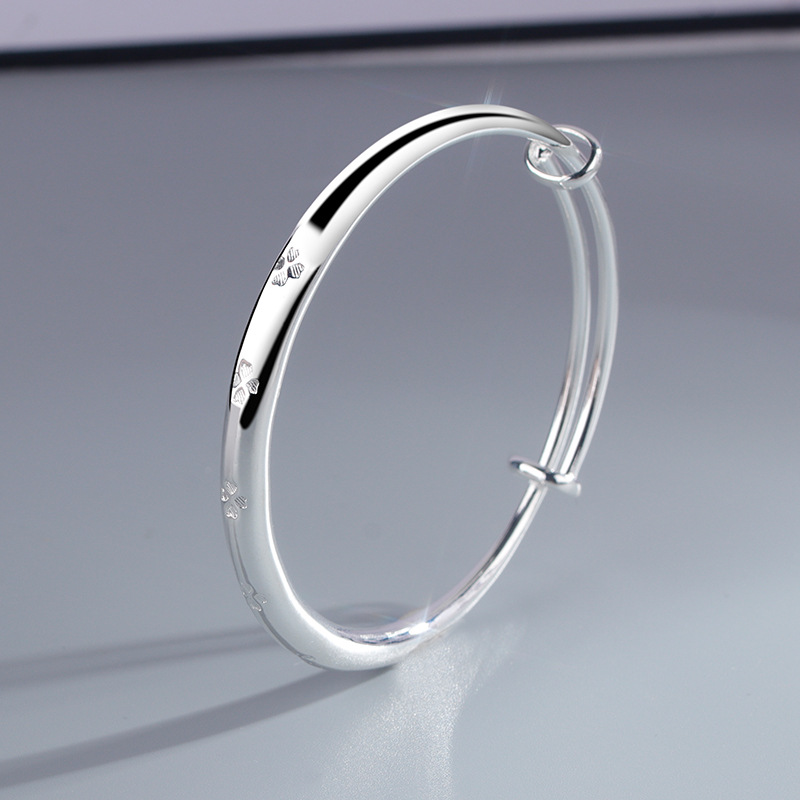 Lucky Four-Leaf Clover Bracelet Goddess Day Gift Solid Bracelet Elegant Young Style Glossy Push-Pull Flower Bracelet