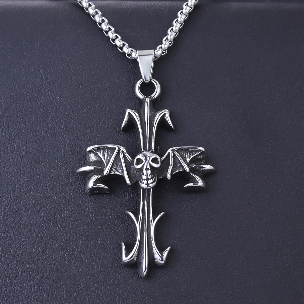 Stainless Steel Skull Cross Pendant Titanium Steel Men's and Women's Hip-Hop Retro Personalized Street Fashion Long Necklace