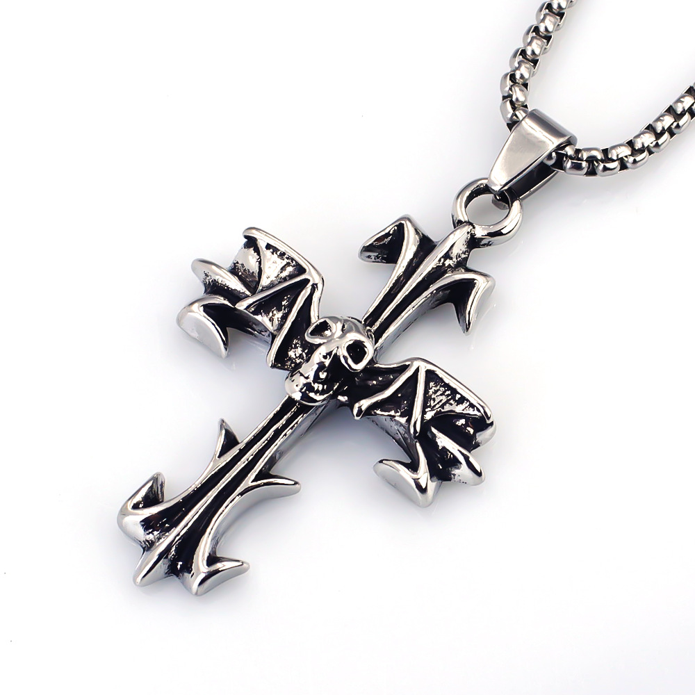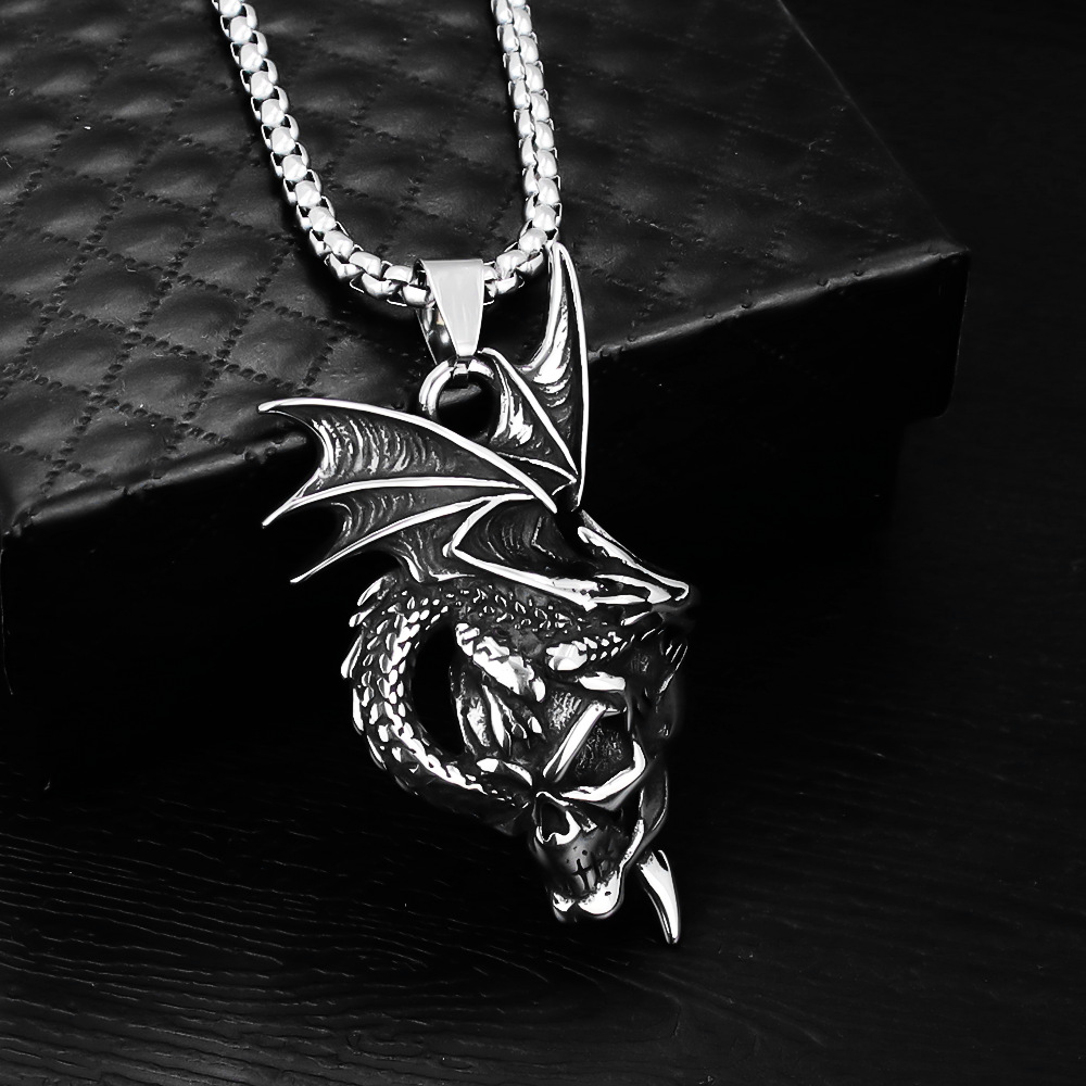 European and American Retro Men's Jewelry Stainless Steel Pendant Personalized Dragon Head Titanium Steel Bat Skull Halloween Necklace
