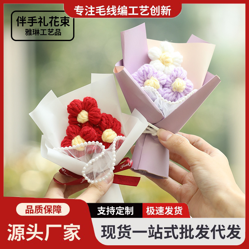 Creative Mini Knitted Flower Puff Flower Bouquet Women's Day Gift Yarn Bouquet Floral Decoration Gift
