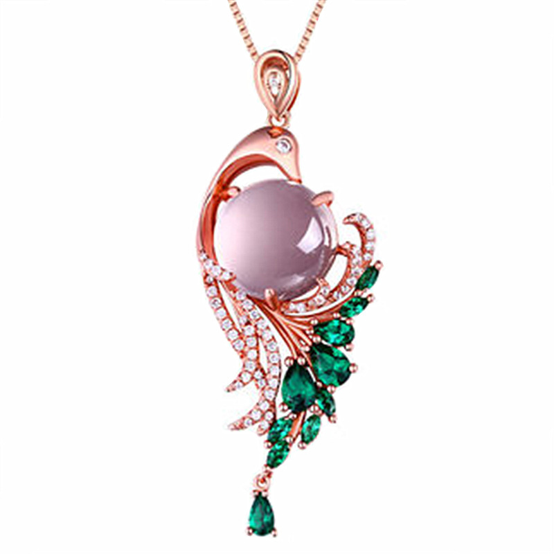 Happy Phoenix Dance Pendant Phoenix Laiyi Hibiscus Stone Powder Crystal Pendant Goddess Crystal Green Zircon Clavicle Chain