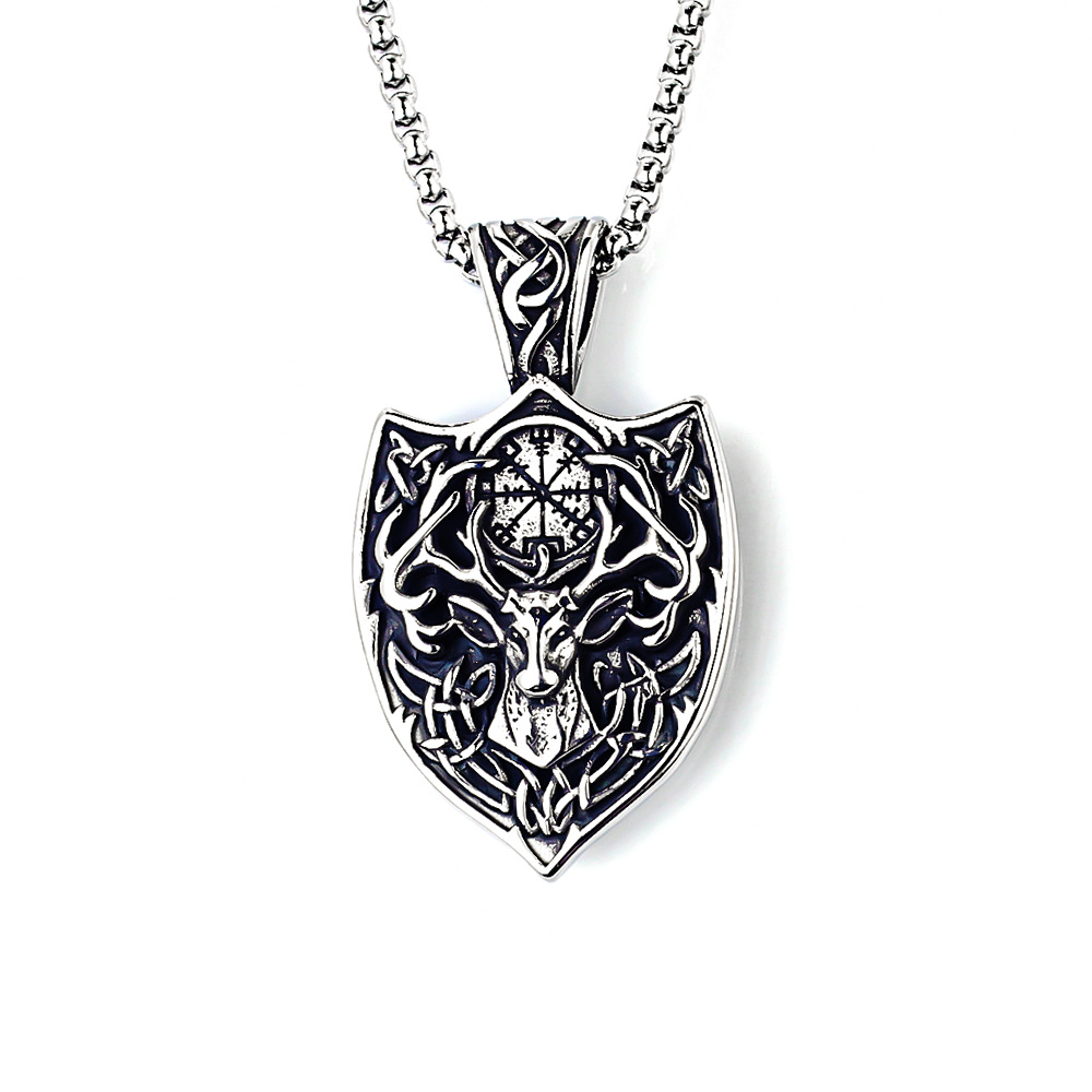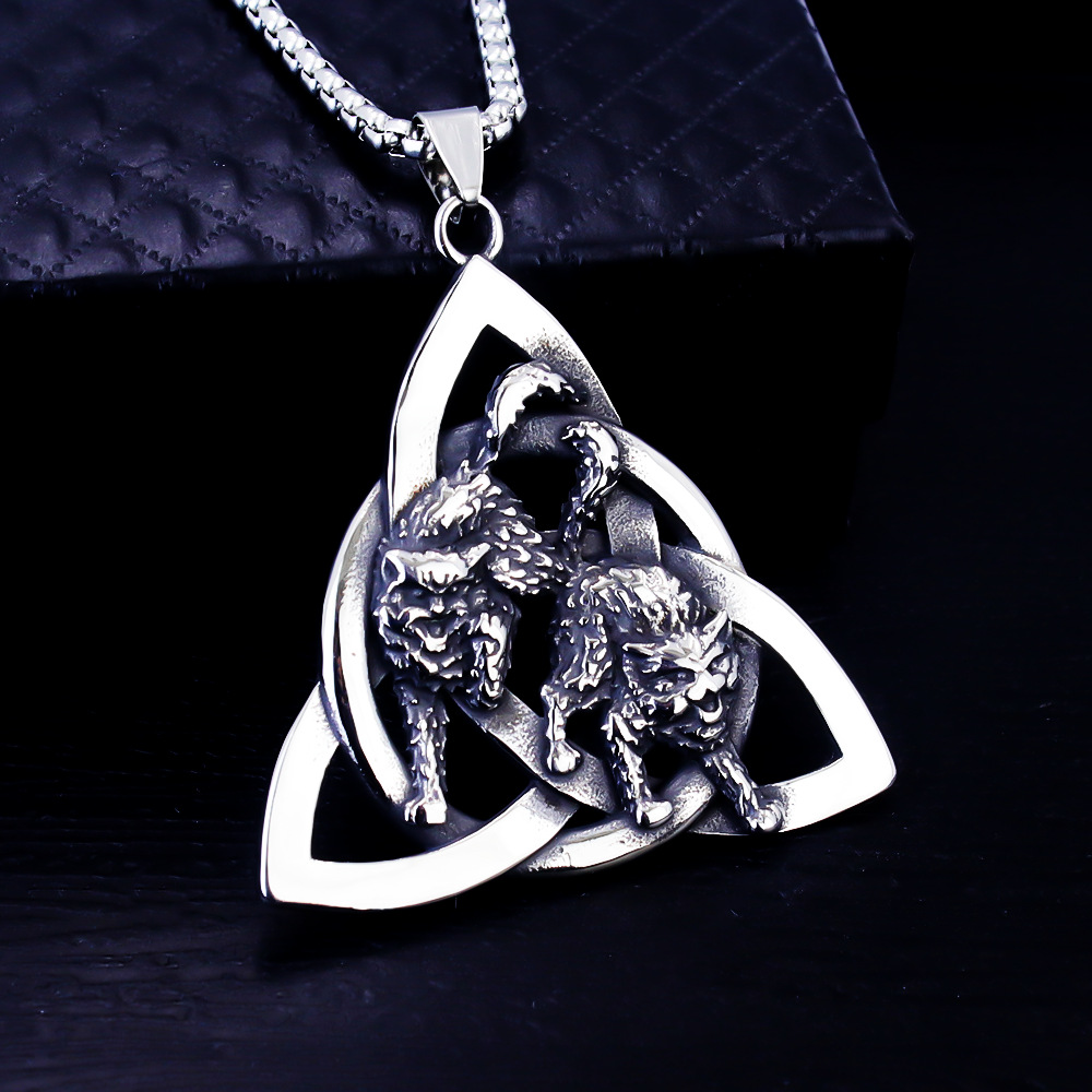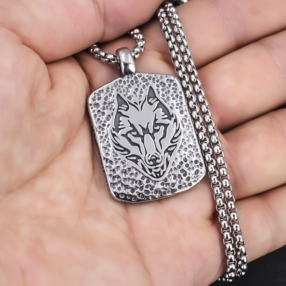 Foreign Trade Punk Titanium Steel Viking Wolf Brand Necklace Personalized Retro Trendy Men and Women Stainless Steel Wolf Head Pendant Necklace