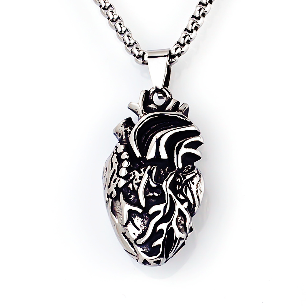 Cross-Border Heart Couple Pendant Punk Hip-Hop Casting Personality Creative Human Organ Titanium Steel Stainless Steel Necklace