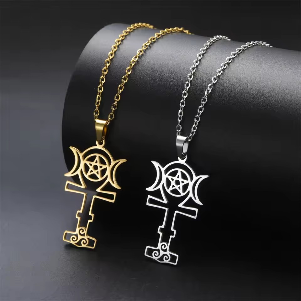 European and American cross-border Wish AliExpress stainless steel necklace triple moon five-pointed star goddess star pendant jewelry