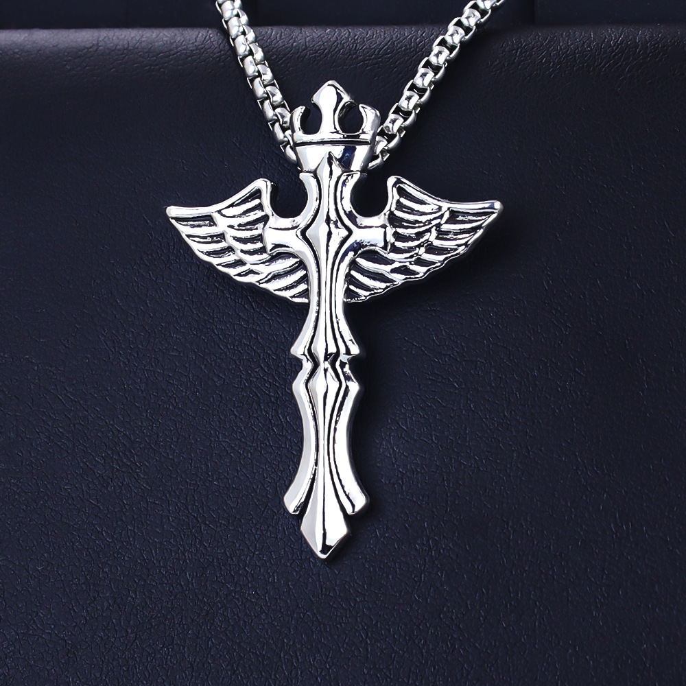 Titanium Steel Retro Angel Wings Necklace Men and Women Trendy Stylish European and American Cross-Border Supply Stainless Steel Feather Pendant