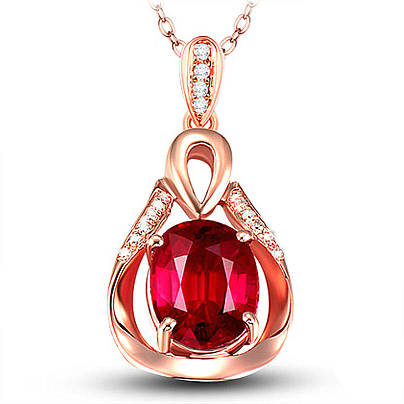 Korean-style Rose Gold-plated Ruby Tourmaline Pendant Goddess Water Drops Inlaid Red Zircon Pendant Clavicle Chain Color Treasure