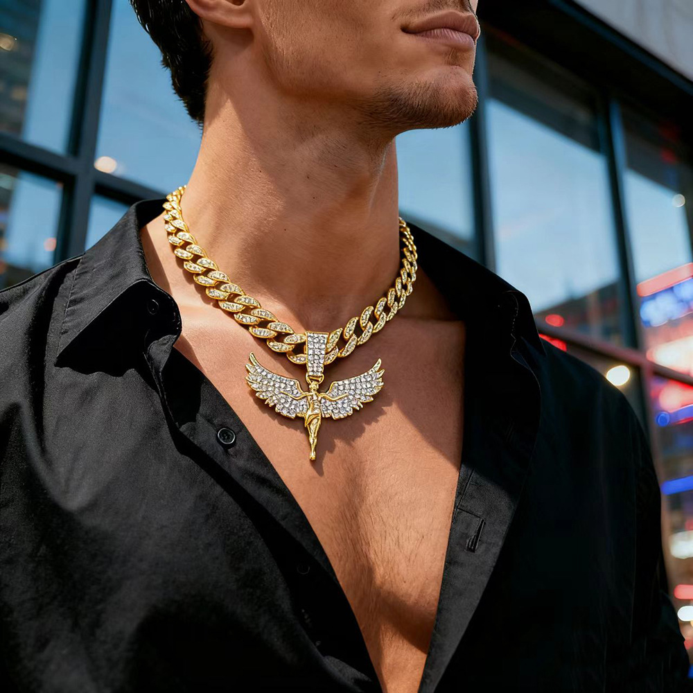Cross-Border Full Diamond Angel Goddess Alloy Pendant Men's and Women's Trendyy Stylish Fashion Hip-Hop U-Shaped Cuban Necklace Wholesale