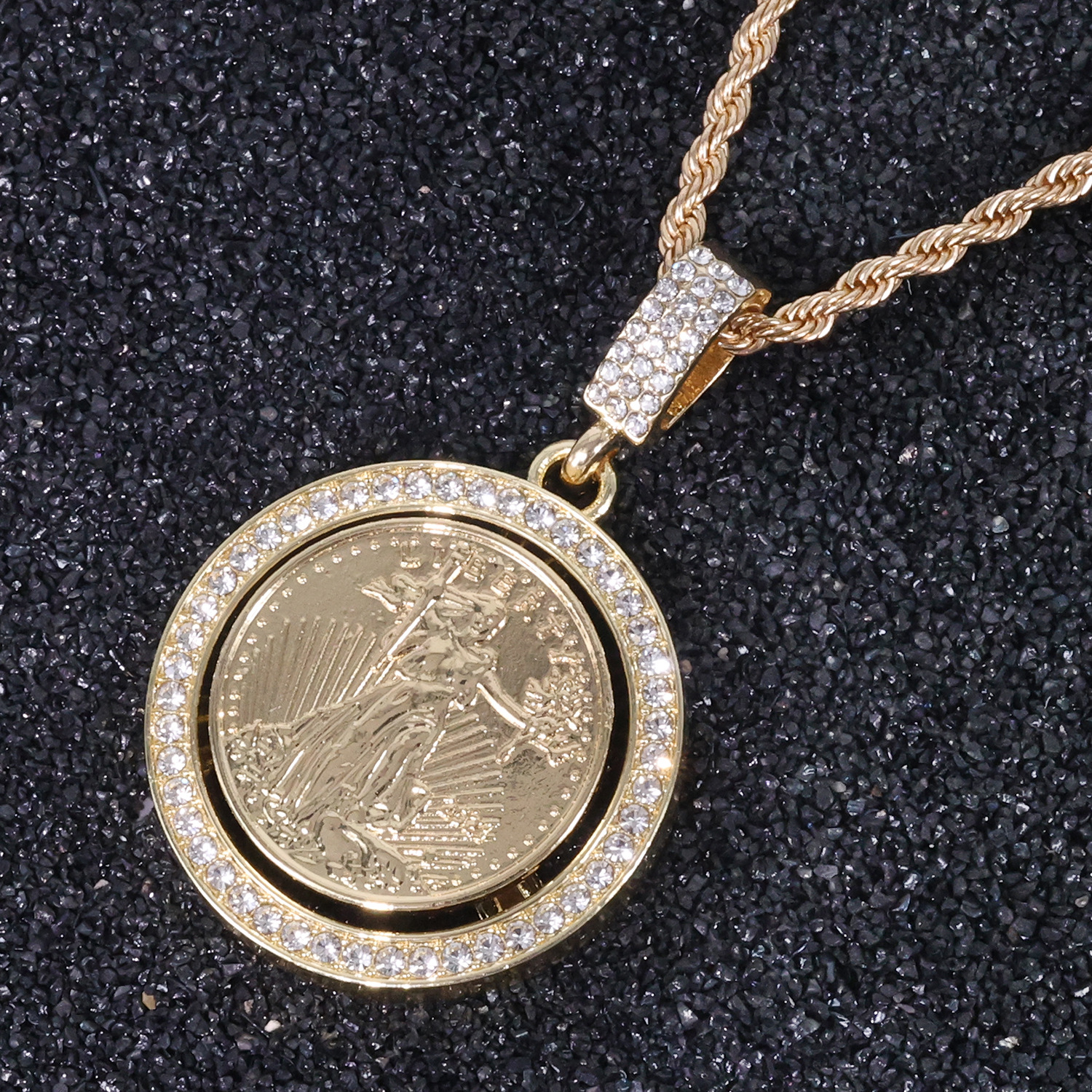 European and American Personalized Accessories with Diamonds and Rotatable Scepter Goddess Pendant for Men, Trendy Street Dance Hip-Hop Cuban Chain