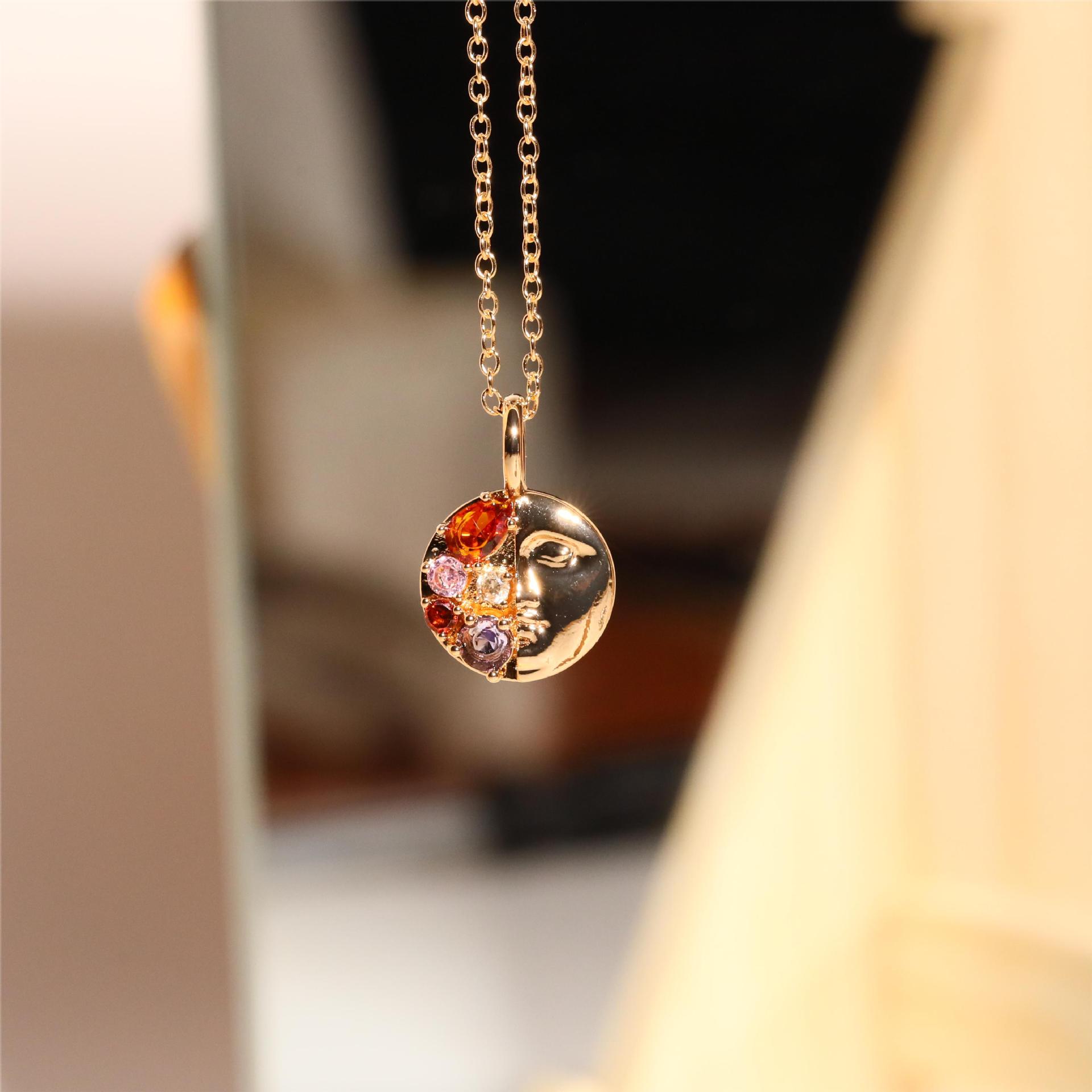 DIY Mini Lotus Heart Sun and Moon Pendant Necklace Titanium Steel Furnace Vacuum Electroplating 18K Gold Preservation