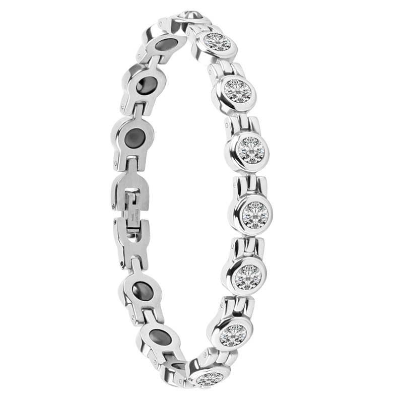 Customized Round White Czech Diamond Stainless Steel Goddess Bracelet Titanium Steel Jewelry Japanese and Korean Amazon Stainless Steel Accessories