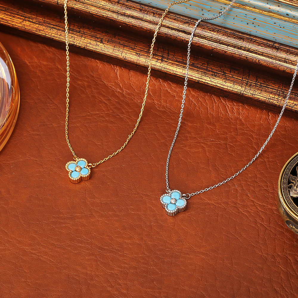 Popular Blue Lucky Four-Leaf Clover Necklace, Classic Light Luxury, High-End Fashion, Elegant Clavicle Chain, Goddess Style Necklace