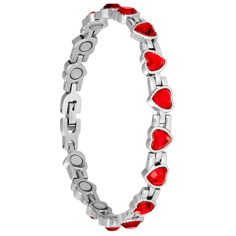 Customized Heart-Shaped Red Glass Stone Stainless Steel Goddess Bracelet Titanium Steel Jewelry Japanese and Korean Amazon Stainless Steel Jewelry