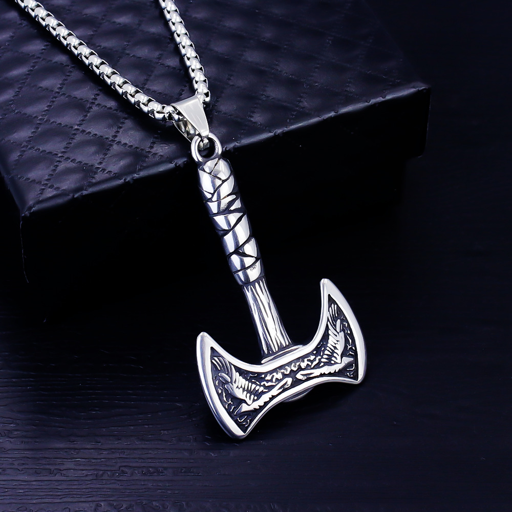 Retro Scandinavian Style Viking Pirate Tomahawk Titanium Steel Necklace Niche Stylish Literary Wear Stainless Steel Pendant Accessories