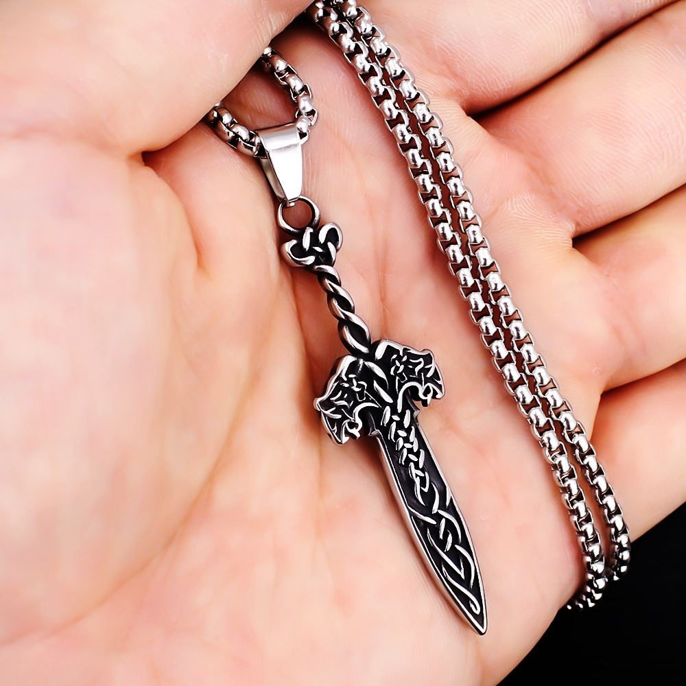 Design Jewelry Retro European and American Style Stainless Steel Sword Pendant Trendy Men and Women Titanium Steel Necklace Wholesale