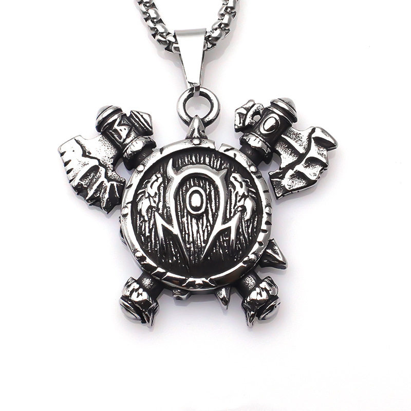 European and American Scandinavian Viking Double-Headed Ax Titanium Steel Pendant European and American Men's Hip-Hop Fashion Stainless Steel Pendant Necklace Jewelry