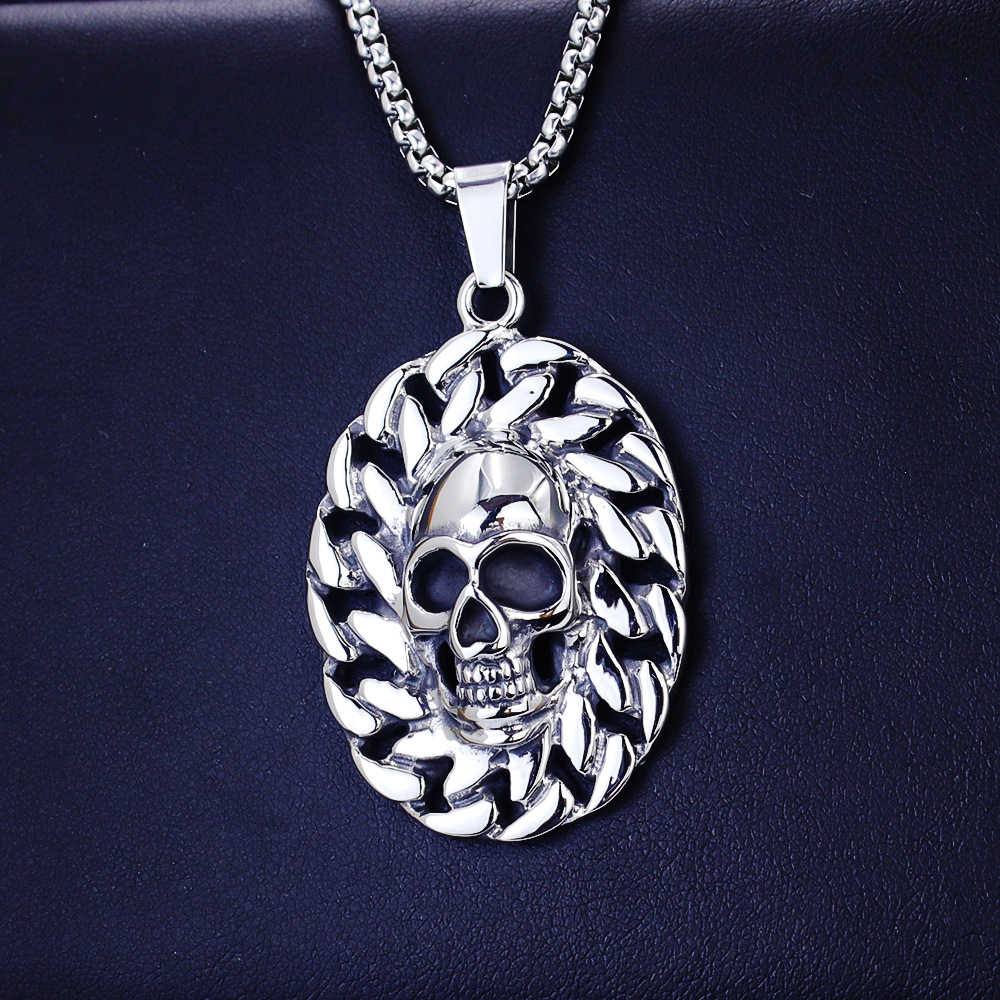 2026 New Halloween Skeleton Pendant Necklace Stainless Steel Titanium Steel Decorative Accessories Retro Pendant