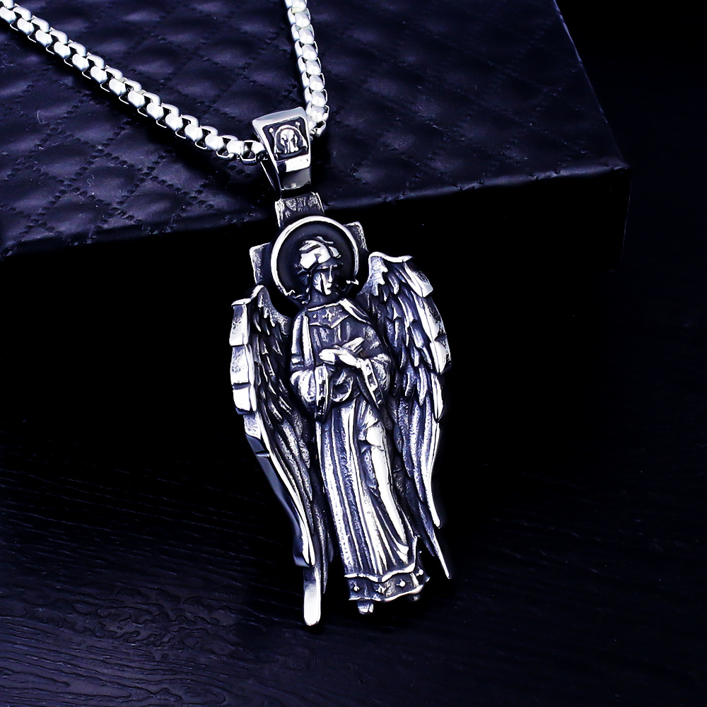 Cross-Border Personalized European and American Style European Faith Goddess Prayer Wings Wishing Stainless Steel Necklace Factory Direct Sale