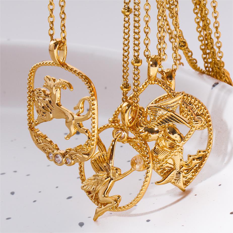 Ancient Greek Goddess Necklace Gods Athena Medusa Mermaid Chimera Copper Plated Real Gold Clavicle Chain Temperament Female