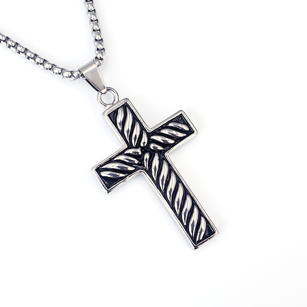 2025 Cross-Border European and American Retro Twill Cross Pendant Punk Hip-Hop Trendy Men's Personalized Stainless Steel Necklace