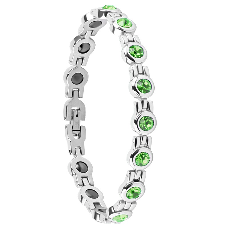 Customized Round Green Czech Diamond Stainless Steel Goddess Bracelet Titanium Steel Jewelry Japanese and Korean Amazon Stainless Steel Jewelry