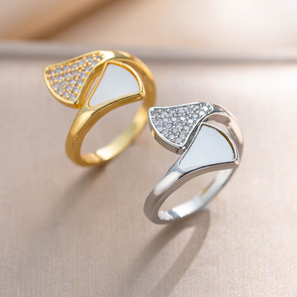 New Korean Style Small Skirt Fan-shaped Stone-inlaid White Shellfish Ring Network Fashion Star Same Style Goddess Fan Series