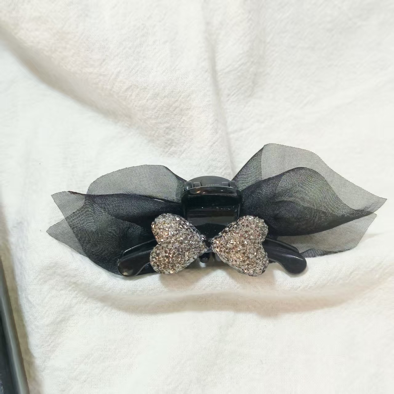 Heart-Shaped Rhinestone Bow Hairpin Princess Head Rabbit Ear Claw Clip for Women 2025 New Side Bangs Clip Hair Accessory