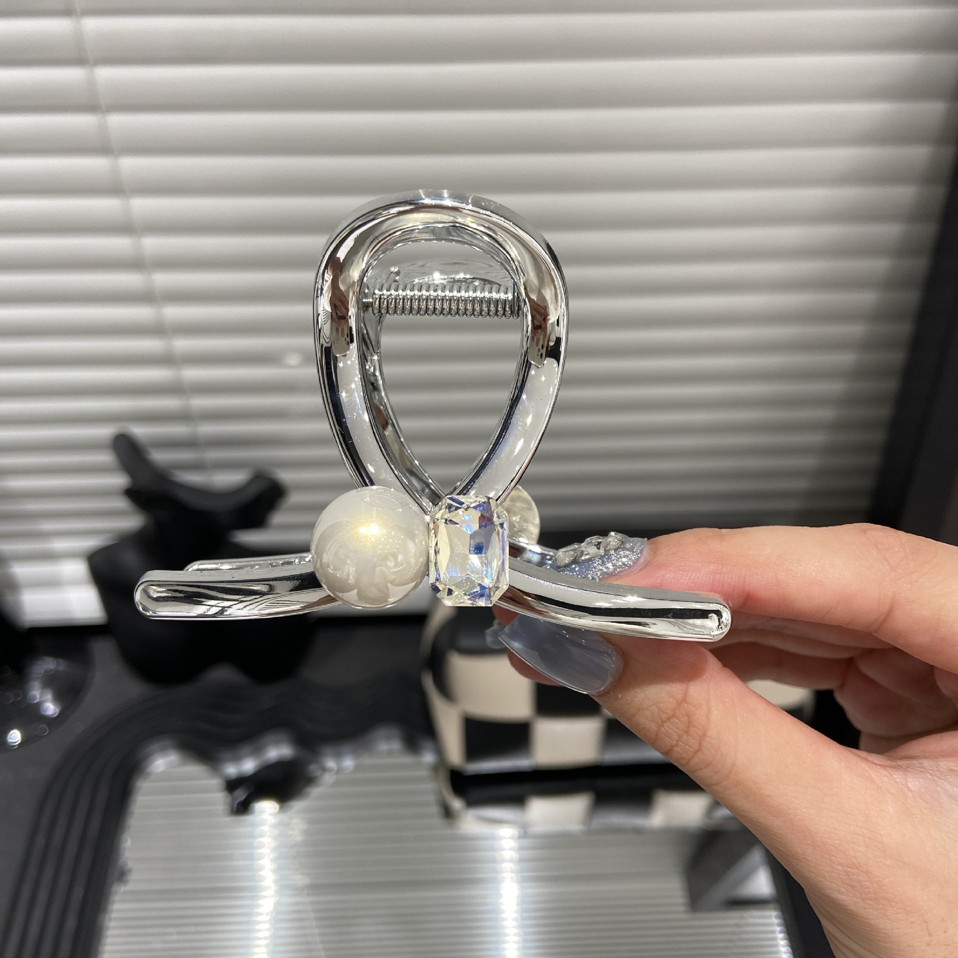 Goddess Elegant Fashion Furry Clip Bow Back of Head Hair Claw Large Melad Diamond-Embedded Claw Clip Light Luxury Hair Accessory