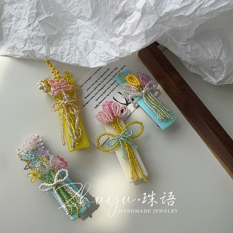 Essential Hair Accessories for Goddesses with Elegant, Beaded Wheat Ears, Orchids and Bell Flower Hairpins, Spring and Summer Small Fresh and Sweet Age-Reducing Date Side Clips