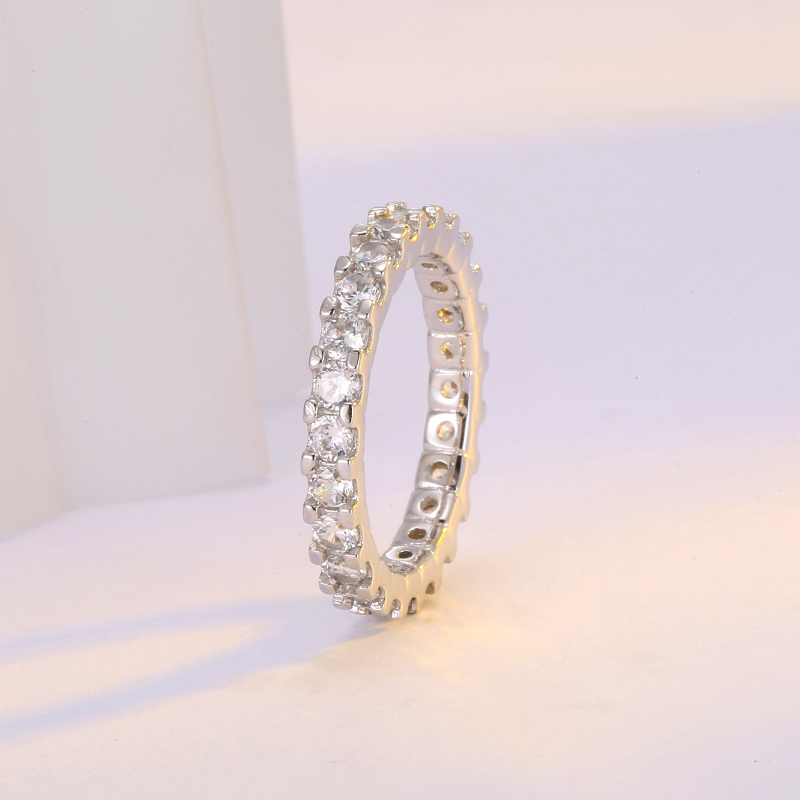 Cross-border Temperament Single Row Women's Platinum Plated Diamond Ring Group Set Full Circle Diamond Simulation Diamond Paris Fashion Goddess Diamond Ring