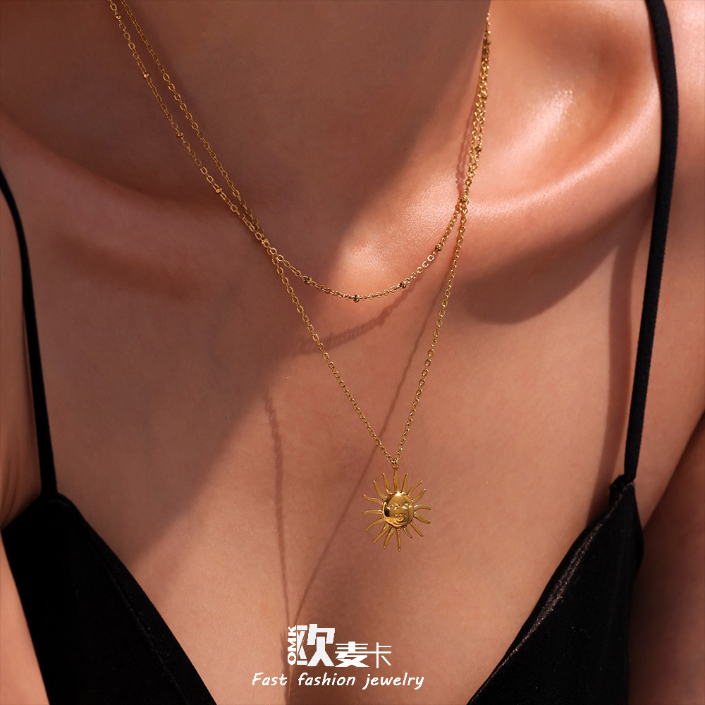 Omega stainless steel sun goddess head clavicle necklace fashion fashion jewelry color retaining necklace jewelry wholesale