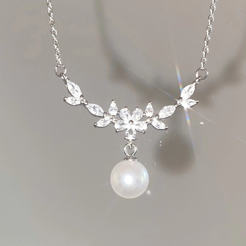 NK-218 Zircon Pearl Pendant Necklace Light Luxury Niche Campus Style Goddess Necklace