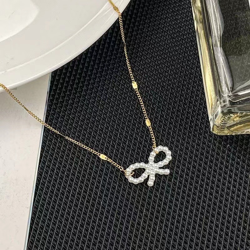 Fashion simple new retro geometric bow necklace European and American metal style gold chain titanium steel necklace goddess style