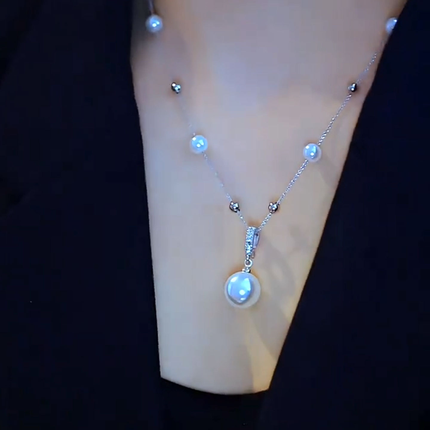 Member NK-221 Fine Otter Buckle Pearl Pendant Necklace Light Luxury Niche Campus Lady Goddess Bracelet