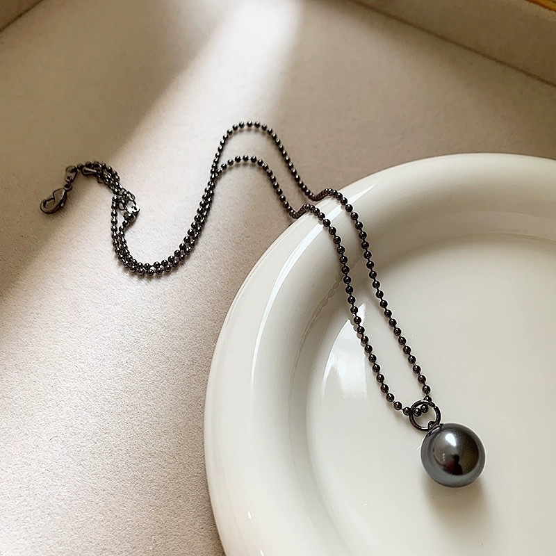 NK-216 Grey Bead Pendant Bead Chain Single Layer Necklace Niche Entry Luxury Lady Goddess Necklace