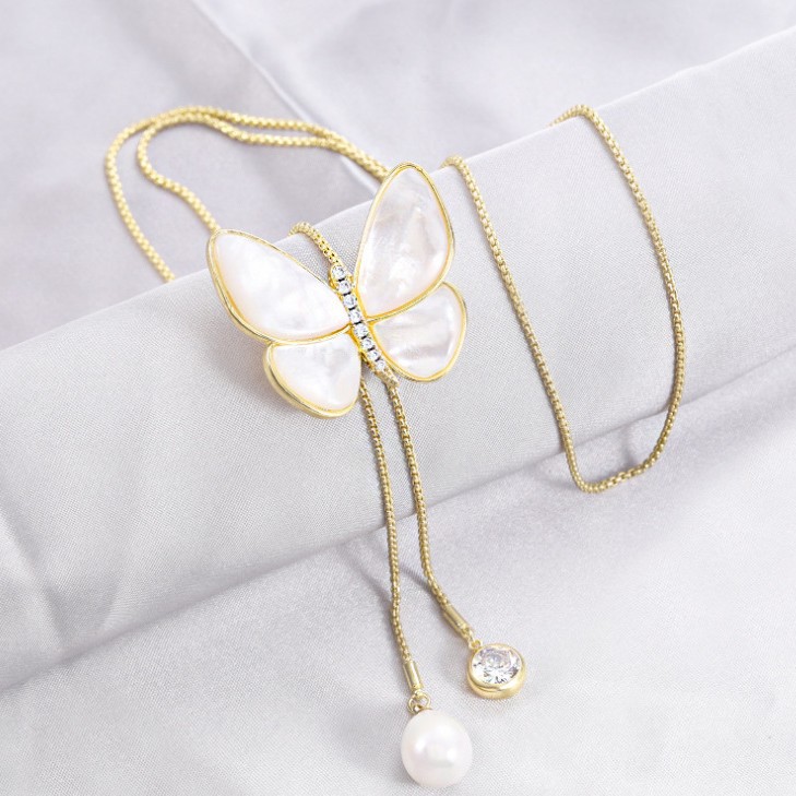 Goddess' Day High-End Natural Mother-Of-Pearl Butterfly Necklace 3A Zircon Sweater Chain Clavicle Neck Chain Cheongsam Jacket Accessories